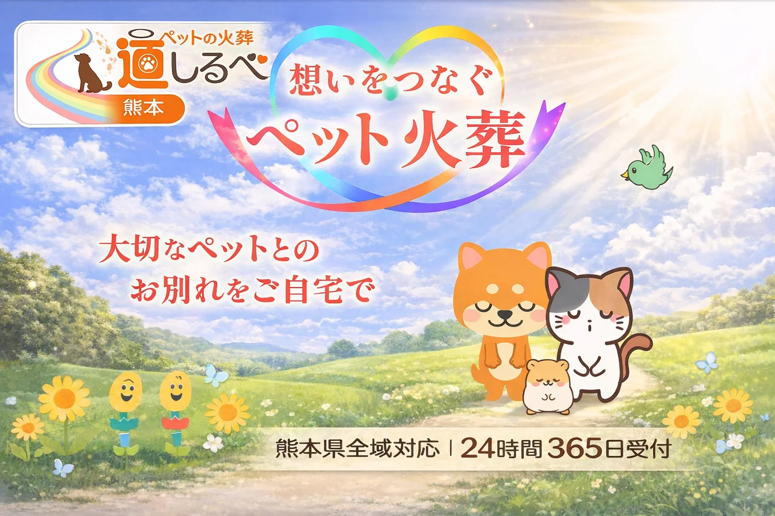 ■ サービス内容 熊本県全域に対応した訪問ペット火葬サービスです。 ご自宅までお伺いし、ご家族のお気持ちに寄り添いながらお見送りのお手伝いをいたします。 猫・犬・小動物に対応しており、すべて完全個別火葬にて執り行っております。 合同火葬は一切行っておりません。 専用の火葬車にて、お別れから火葬、お骨上げ、ご返骨まで一貫して対応いたします。 ■ 特徴 ・完全個別火葬のみ 他のペットと一緒になることはなく、丁寧に火葬いたします。 ・ご自宅でお見送りからご返骨まで可能 移動することなく、ご自宅で落ち着いてお見送りいただけます。 ・24時間365日電話受付 深夜・早朝でもご相談をお受けしております。急なお別れの際にもご相談いただけます。 ・明朗会計・追加費用なし 事前に総額をご案内し、あとから追加費用はありません。安心してご依頼いただけます。 ・立会い・お骨上げ対応 ご家族でお骨上げまで行っていただけるため、納得のいく形でお見送りいただけます。 ・無煙・無臭の火葬車 周囲の環境に配慮した火葬車を使用し、ご自宅でも安心してお任せいただけます。 ・動物葬祭ディレクター在籍 専門の資格を持つスタッフが、最初から最後まで責任をもって対応いたします。 ■ 料金 ペットの大きさに応じた明確な料金体系でご案内しております。 ・おまかせ火葬:8,250円〜 ・立会い火葬(拾骨なし):15,400円〜 ・立会い火葬(拾骨あり):17,600円〜 ・セレモニー火葬:39,700円〜 骨壷・骨袋含む(おまかせ火葬除く) ※一部地域では出張費をいただく場合があります ※21kgまで対応 ■道しるべ熊本が大切にしていること ・お別れの状況にかかわらず、ご家族のお気持ちを最優先に考えた対応 ・熊本の住宅環境や近隣状況に配慮した、静かで穏やかなお見送り ・比較・検討の途中段階でも、無理なご案内や営業は行わない姿勢 ・「まずは話だけ聞きたい」という方にも、不安や疑問に一つひとつ丁寧にお応え ■ 熊本でペット訪問火葬をお考えの方へ ご不安なことやご不明点がございましたら、道しるべ熊本へご相談ください。 無理に決める必要はありません。 分からないことや不安な点を確認するだけでも大丈夫です。 ご家族のお気持ちを第一に、事前にしっかりとご説明し ご納得いただいたうえで進めさせていただきます。